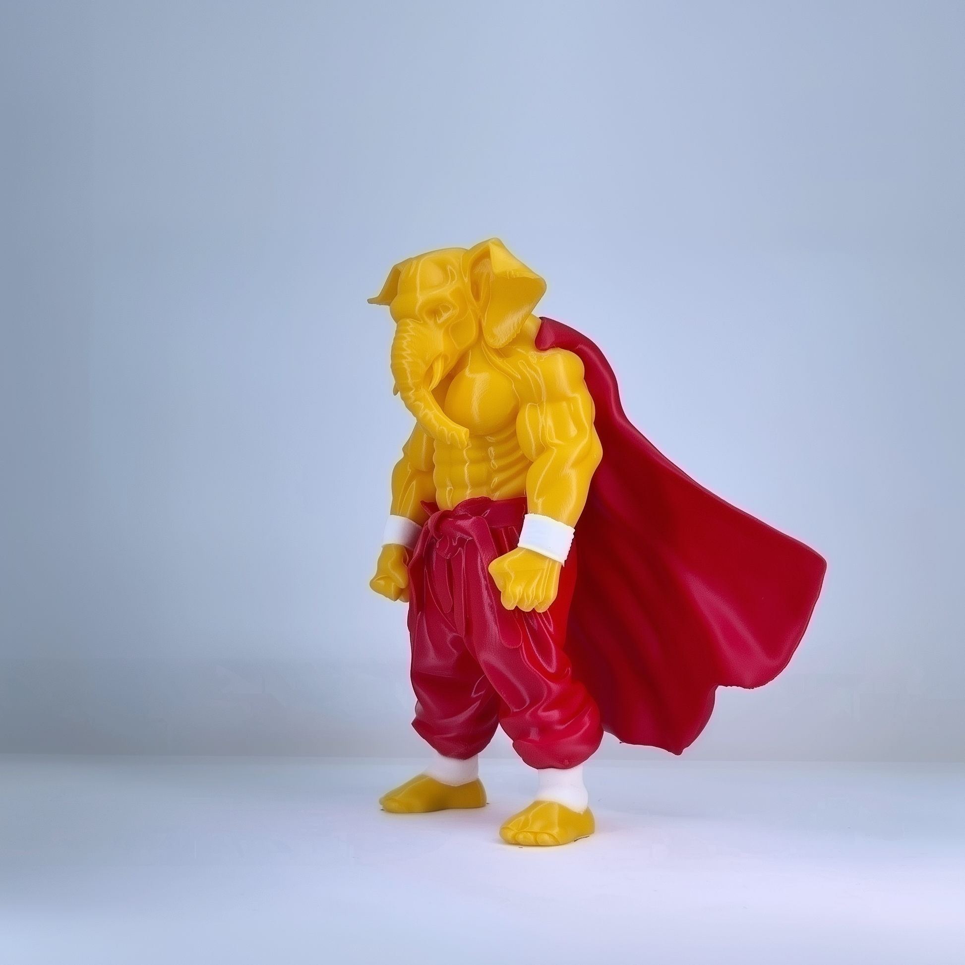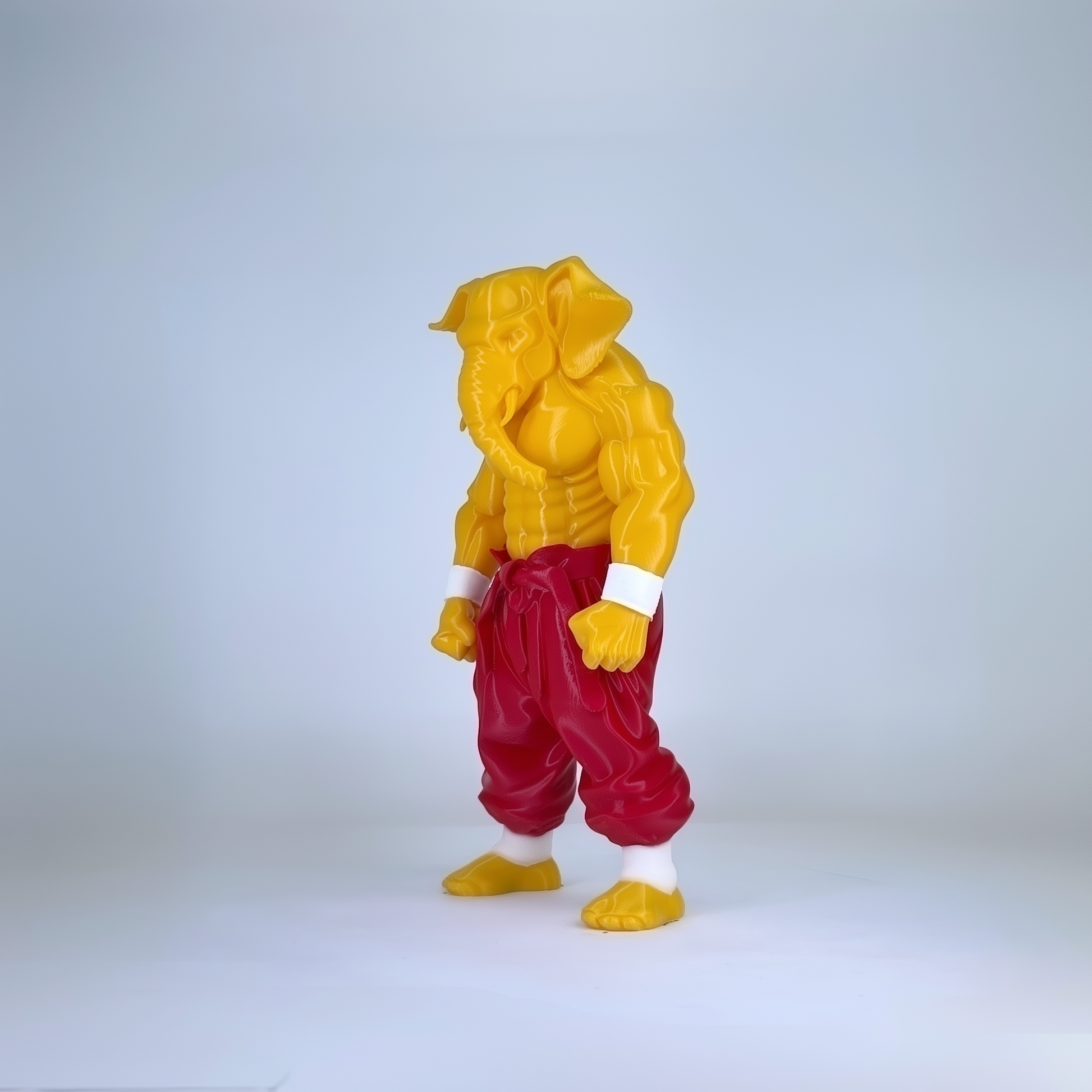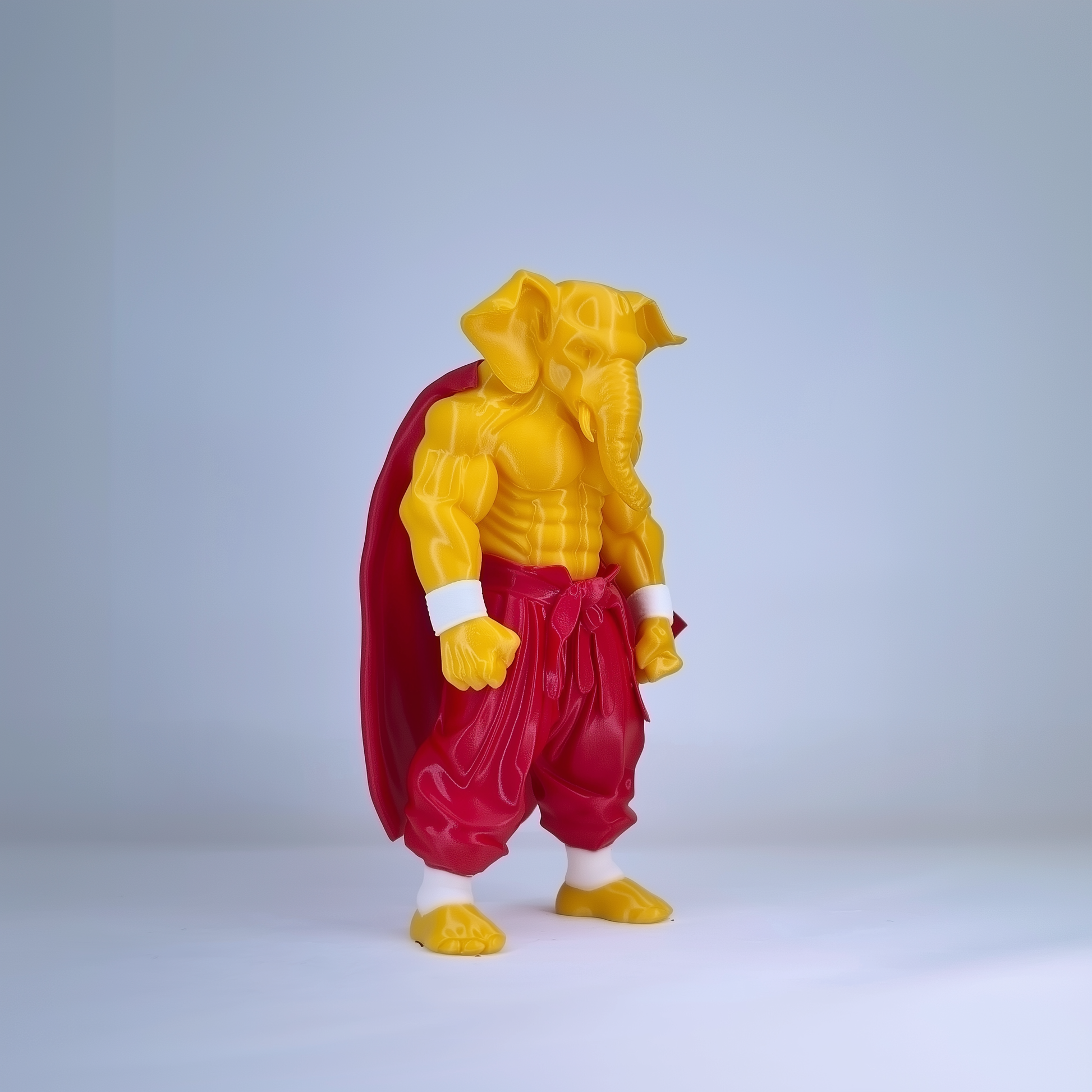 A vibrant 3D Warrior Ganaveera dressed in yellow pants, radiating positivity, energy,. Crafted with modern AI artistry while rooted in tradition, this figurine is perfect for housewarming gifts, birthday return gifts, festive hampers, and kid's toys. A unique collectible symbolizing blessings and joy.