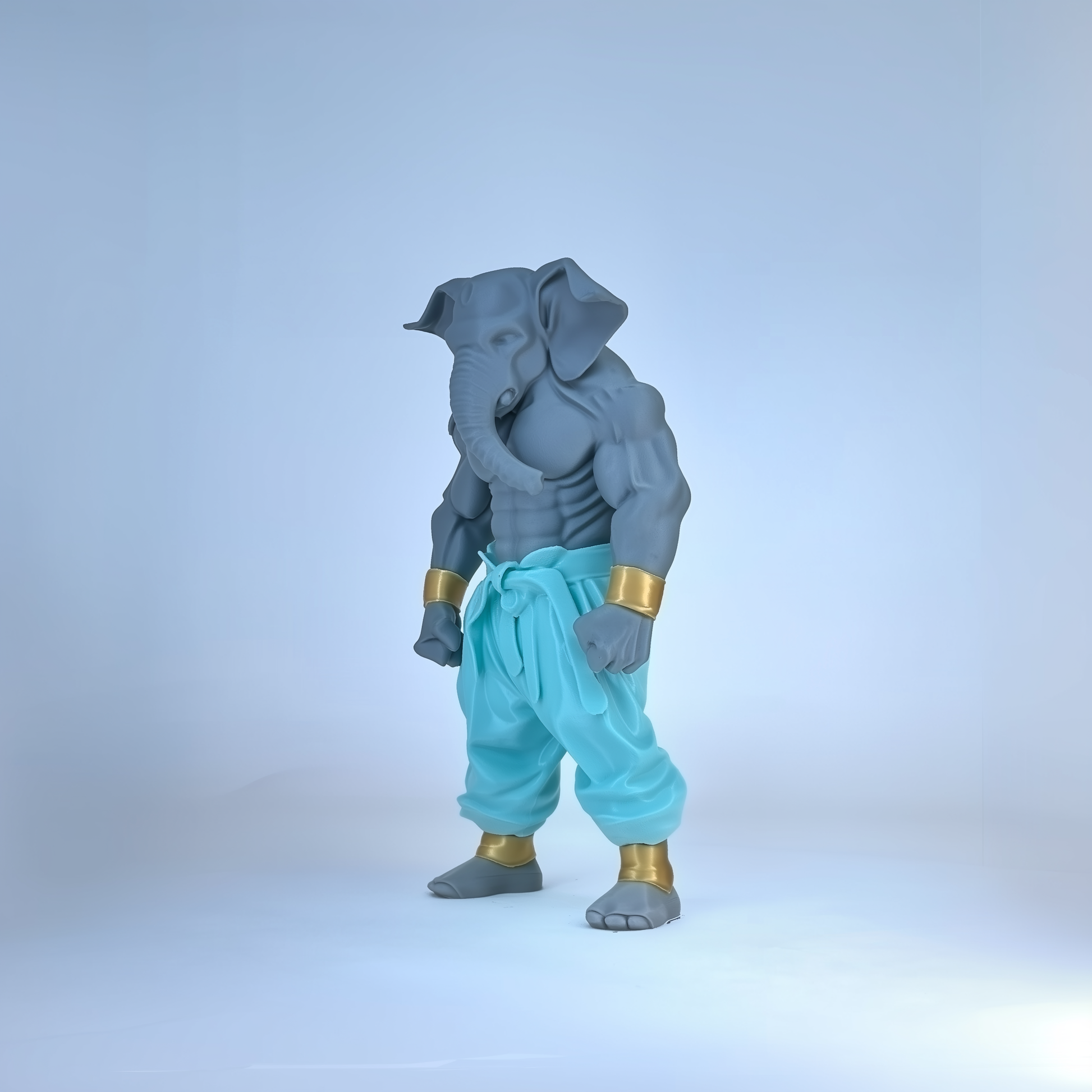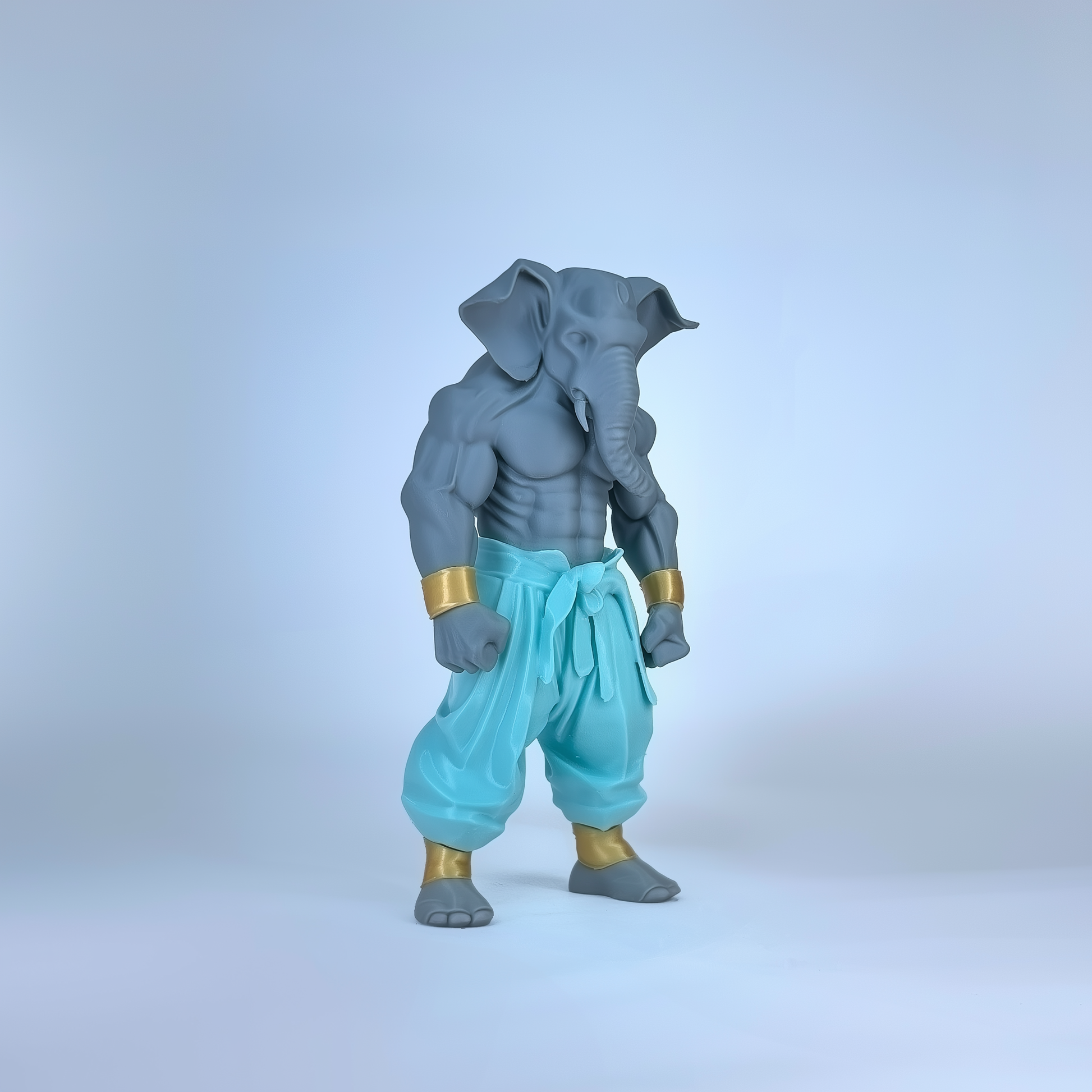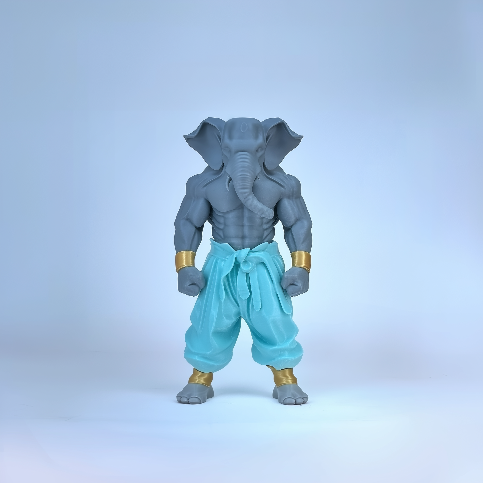 This Grey Warrior Ganaveera Figurine blends tradition with a modern warrior look. Featuring a strong grey body, aqua pants, and a majestic white cape, this idol represents balance, wisdom, and power. Perfect as a decor centerpiece or a thoughtful gift, it radiates strength and spiritual energy.